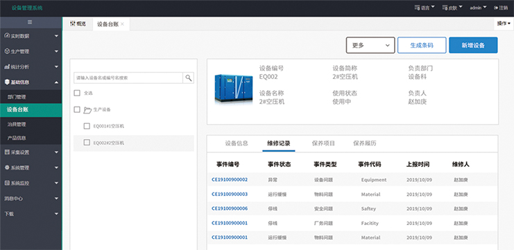 尊龙时凯设备管理系统支持设备档案的建立、、、、维保基准的设置、、维保任务的生成、、设备备品备件的管理、、维修任务的跟踪、、设备监控、、、、OEE分析等,,可对设备全生命周期的管理,,,极大地提高设备管理部门的工作效率。。。实现企业设备管理科学化、、、规范化、、、网络化的需求;通过设备采购、、、、设备报废、、、、设备维修、、、设备保养等相关模块实现设备生命周期全面管理,,进而保证企业对设备的各种管理制度予以落实,,,提高企业的管理效率;以战略竞优、、、、提高设备工作效率和维护维修效率为目的,,,,支持高层决策、、、、中层控制、、基层运作的集成化人机管理系统。。。。