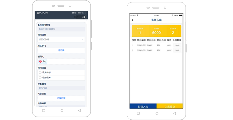 ① 库存安全预警              ② 手机/PC扫码入库              ③ 备件领用审核              ④ 制定盘点计划,,,即时预警,,定期盘点